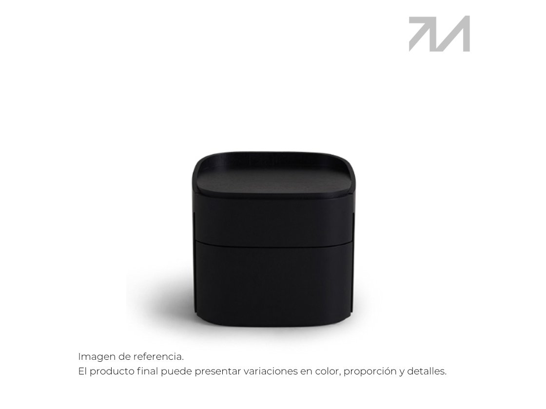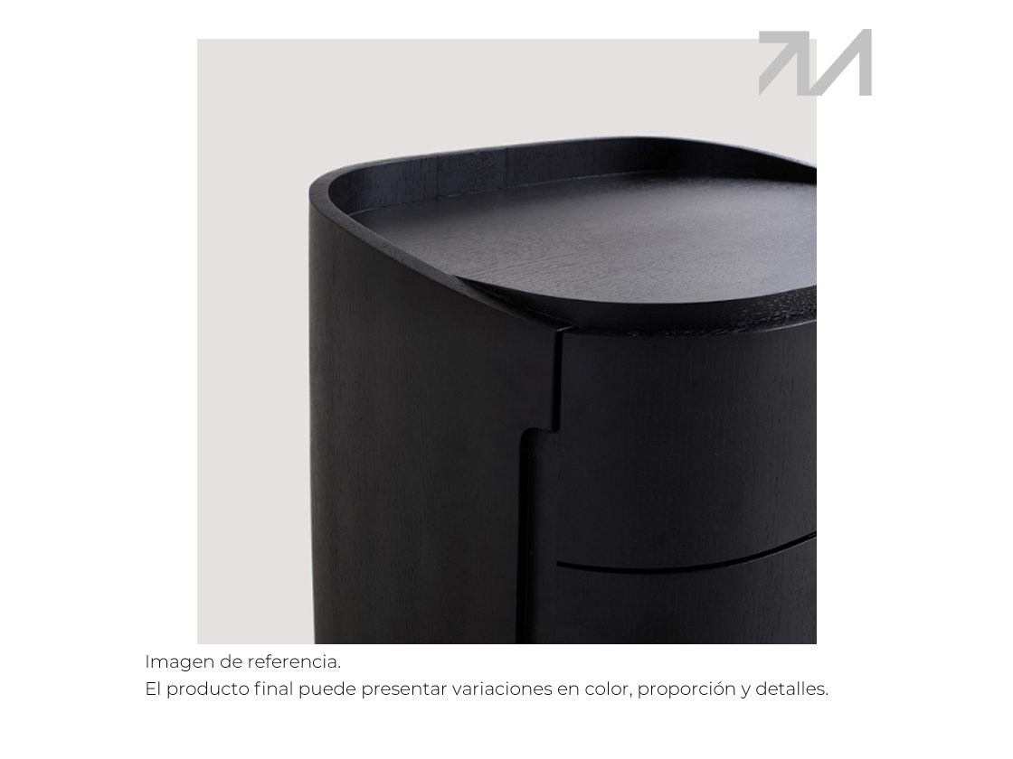 Mesa de noche moderna y funcional, con diseño de líneas limpias suavizado por curvas bien resueltas.